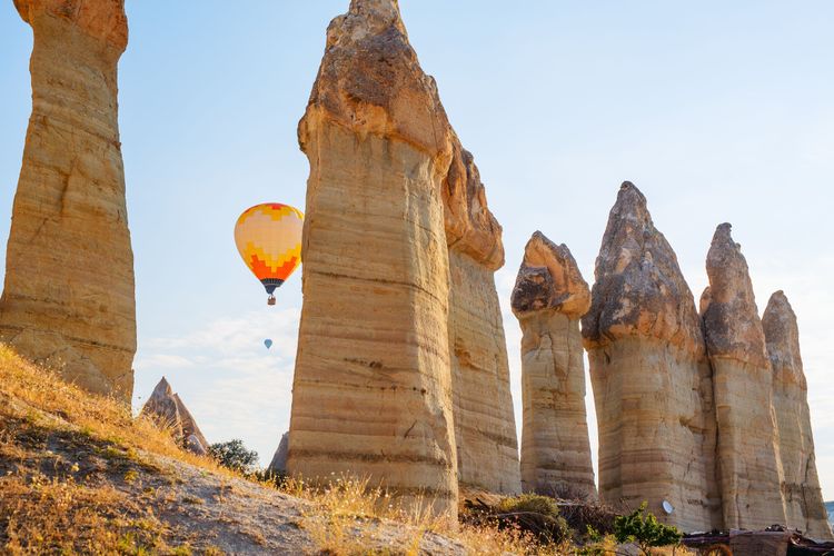 - © givaga / ShutterstockLa forma más fácil y rápida de llegar a Göreme desde Estambul (400 km) o Ankara (300 km) es en vuelo nacional. Sin embargo, por razones económicas y ecológicas, también se puede optar por hacer el trayecto en autobús o coche de alquiler, en cuyo caso habrá que armarse de paciencia. La capital de Capadocia, **Kayseri, está** a unos 70 km de Göreme**, y el viaje en coche dura menos de una hora.