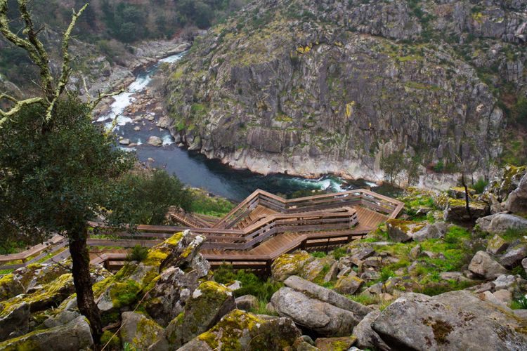 Este paseo es un verdadero cambio de escenario, con un toque de Muralla China. Se encontrará en plena naturaleza y podrá observar 9 biospots a lo largo de los 8.700 metros de recorrido, descubriendo insectos, animales y plantas por el camino. También podrá ver una cascada (Aguieiras) y una cascada que desemboca en el río Paiva (la Gola do Salto). Durante el paseo, podrá incluso hacer una pausa para bañarse en el río, en la playa de Vau.