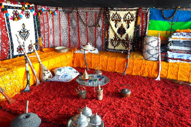- © Soad22avr / ShutterstockAlgunas tradiciones bereberes siguen muy vivas en Marruecos, y son especialmente visibles en ocasiones especiales como bodas, nacimientos y fiestas religiosas. Pero si no tiene la suerte de asistir a una ceremonia, también puede descubrirlas en la vida cotidiana. Entre las tradiciones que persisten están la vestimenta tradicional, el maquillaje con henna o azafrán, las canciones y la música tradicionales, los moussems (fiestas regionales) y, por supuesto, la artesanía.