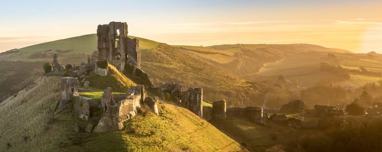 Enclavado en las colinas de Purbeck, el castillo de Corfe es uno de los lugares más románticos del Reino Unido, y el otoño es la época perfecta para visitarlo. Las nieblas matinales son muy habituales y un paseo por las colinas ofrece unas vistas impresionantes de la campiña circundante.