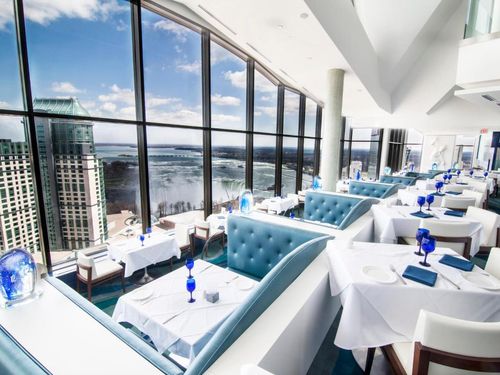 Para admirar las cataratas de día y de noche, ¿qué más se puede recomendar que el hotel con las mejores vistas de las cataratas del Niágara? Desde lo alto de sus edificios, el Hilton Niagara Falls le ofrece una vista absolutamente impresionante de las cataratas.