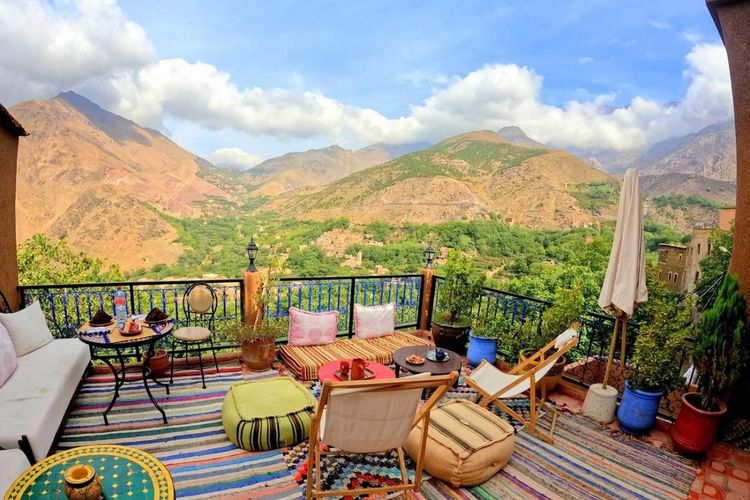 - © Atlas Prestige / Booking.comEn el corazón de las montañas del Atlas, el pequeño pueblo deImlil está a sólo hora y media de Marrakech. El Riad Atlas Prestige promete unas vistas impresionantes. Todas las habitaciones dan al macizo, y también se pueden admirar las cumbres nevadas y bañadas por el sol desde la terraza.