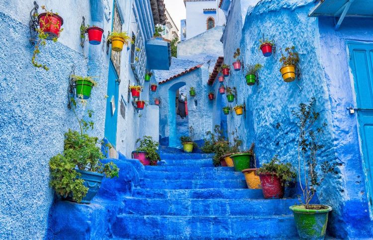 - © Olena Tur / ShutterstockFundada en el siglo XV, la medina está construida en torno a la arquitectura andalusí-morisca. Sus paredes encaladas se han pintado de azul con un pigmento especial. Y para mimetizarse con la decoración, las ventanas y puertas presentan tonos del mismo color, sumergiéndonos en un mundo aparte, casi de cuento de hadas.