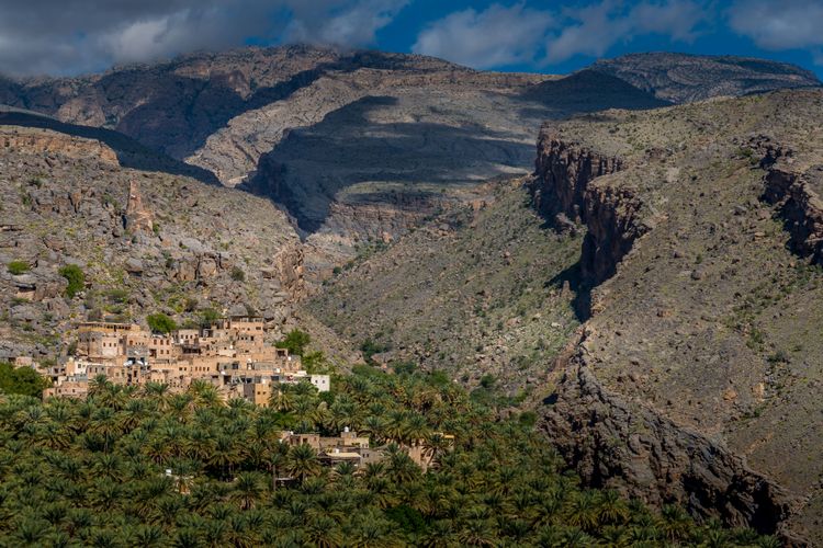 Le village de Misfat, au milieu des montagnes et palmeraies