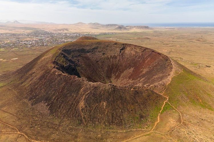 - © Dave0 / ShutterstockCalderón Hondo es un volcán de 278 metros de altura situado a tiro de piedra del pueblo de Lajares. Es vecino del volcán Bayuyo, de 271 metros de altura. Se cree que la formación de tres volcanes seguidos —Bayuyo, Calderón Hondo y Las Calderas— dio lugar a la isla de Lobos, al norte de Fuerteventura. El impresionante cráter del Calderón Hondo tiene 70 metros de profundidad y sólo puede verse desde la cima.