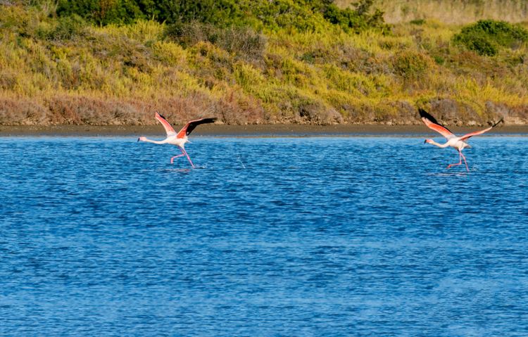 flamencos volando sobre el agua, Ibiza