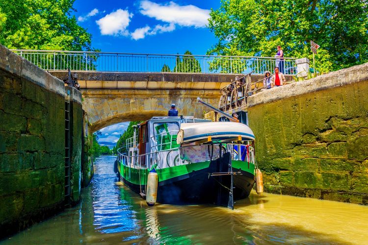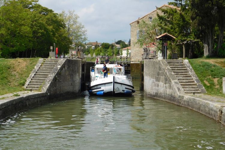 A la salida de Trèbes, hay otra estructura que bien merece un vistazo, además de ser de visita obligada: la esclusa triple. Esta esclusa de tres cuencas se justifica por un desnivel de casi 8 metros. Evidentemente, esta etapa del viaje le llevará un poco de tiempo, ¡pero está de vacaciones! El Moulin de Trèbes, a orillas del canal, ofrece una cocina gastronómica rica y refinada, pero asequible.