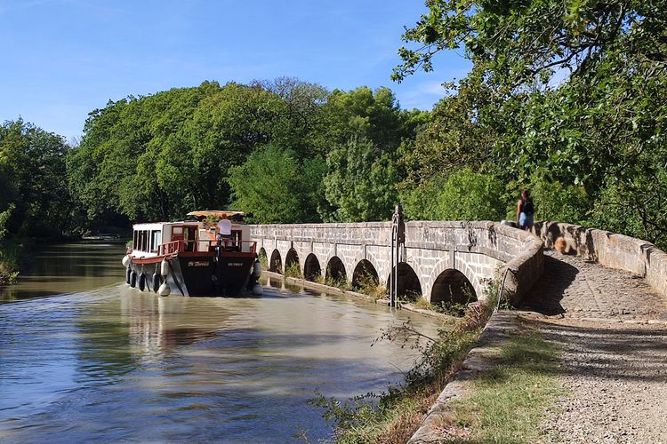 Soltemos amarras y volvamos a partir. A babor (el Canal du Midi es el límite sur del Minervois), los viñedos del Minervois se extienden hasta donde alcanza la vista, en particular las laderas de Peyriac. Pasando elacueducto de Millegrand, podrá pasear por los terrenos del Château de Millegrand, una de las mayores propiedades vinícolas del Languedoc (Minervois y Pays d'Oc). Después pasará por el acueducto de Mercier para llegar a la región de Marseillette. Si desea hacer otra parada y añadir un poco de ambiente festivo al silencio al que se ha acostumbrado, el Café de la Terrasse ofrece regularmente espectáculos musicales. Consulte el programa en su página de Facebook.