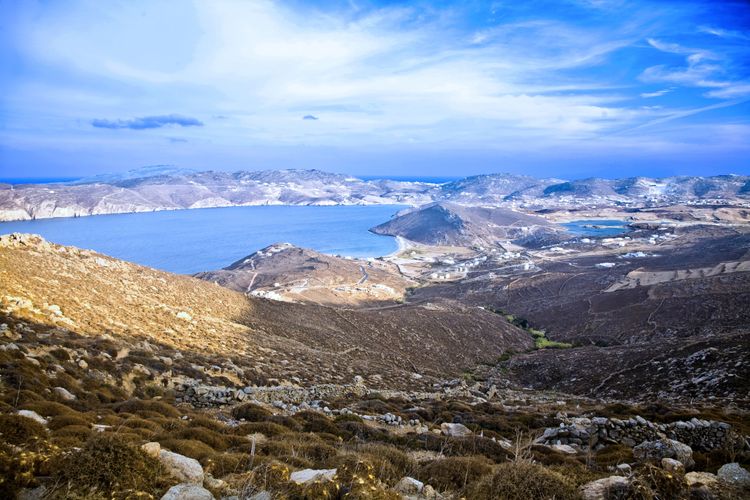 En Mykonos, toda la actividad turística se concentra en Chora, la capital, y las hermosas playas del sur. El norte, en cambio, ha corrido una suerte ligeramente distinta. De este a oeste, la costa es principalmente rocosa y escarpada, con sólo un puñado de calas de arena... En un día ventoso, ¡es casi inhóspita!