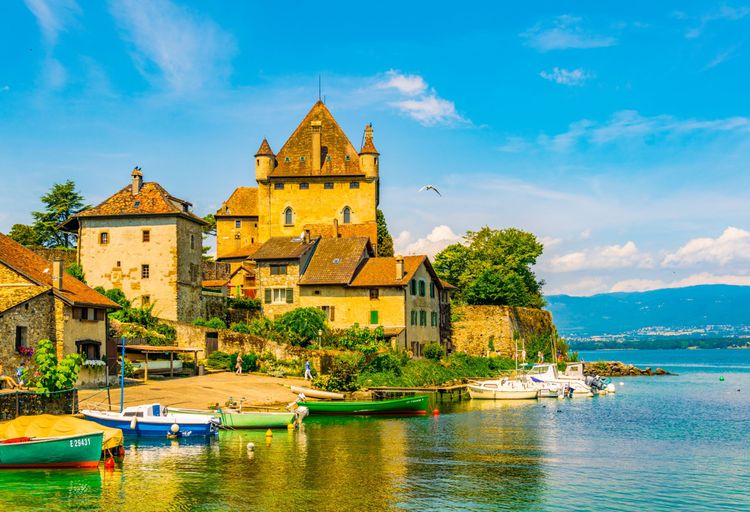 Situada entre Ginebra y Evian, Yvoire es una ciudad medieval de principios del siglo XIV. Conocida por su gran belleza, debe su notable arquitectura a Amédée V le Grand, conde de Saboya. La ciudad se fortifió en 1306 debido a su posición estratégica entre el "petit lac" y el "grand lac", en pleno conflicto delfino-saboyano. Los edificios construidos en esta época, como el castillo, las murallas, las puertas, los fosos y las casas medievales, se han conservado especialmente bien. Aunque la piedra es el material dominante en Yvoire, la ciudad también es conocida por sus flores, que aportan una gran variedad de colores según la estación. Para disfrutar al máximo de su visita, recomendamos pasear por las callejuelas empedradas, descubrir a los artesanos locales, visitar el famoso jardín de los cinco sentidos de Yvoire y terminar el día degustando las especialidades locales en uno de los restaurantes de la ciudad.