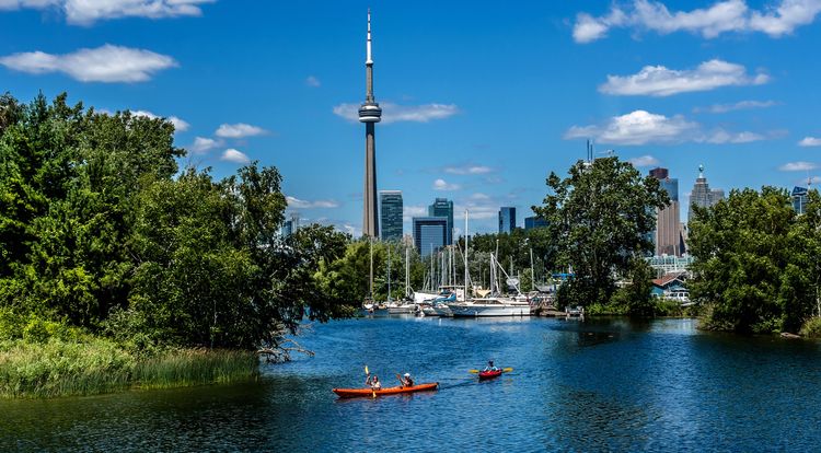 Las islas de Toronto son un archipiélago situado a menos de 2 km del centro de la ciudad. Esta proximidad se explica porque antes eran parte integrante del continente. En 1858, una violenta tormenta separó las islas del continente. Las islas tienen 262 casas y una población anual de unas 700 personas.