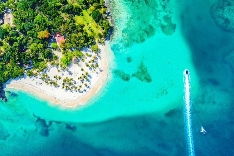 La paradisíaca isla de Cayo Levantado desde el aire.