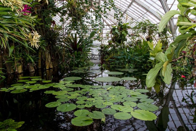 Vista interior del gran invernadero del Conservatorio de Flores de San Francisco