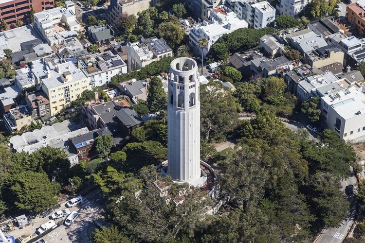 Vista aérea de Coit Tower, Telegraph Hill, San Francisco
