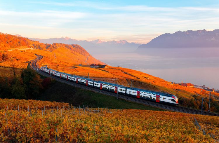 Los aficionados al tren también pueden tomar el Lavaux Express a través de los viñedos en terrazas, el lago y las montañas.