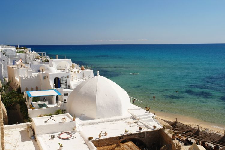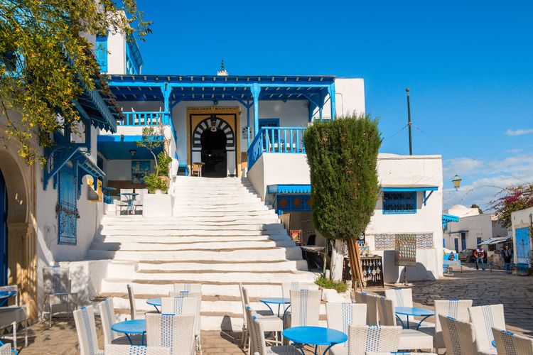 Situado a sólo 17 km de la capital, Túnez, el encantador pueblo de Sidi Bou Saïd recibe el sobrenombre de "pequeño paraíso blanco y azul", y es fácil entender por qué. Es una de las postales de Túnez, si no LA postal. Aferrado a la cima de una colina que domina el mar Mediterráneo, el lugar es espléndido y ofrece una vista espléndida que abarca el golfo de Túnez hasta Cap Bon. Este panorama puede admirarse tomando un té a la menta en el Café des Délices, popularizado por la canción de Patrick Bruel, o desde el palacio del barón Rodolphe d'Erlanger, pintor y músico, que introdujo el azul y el blanco en Sidi Bou Saïd.