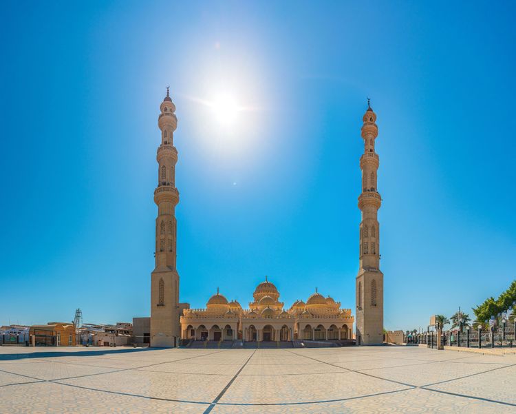 En 2006, el gobierno egipcio decidió construir una mezquita más grande para dar cabida a todos los fieles de la ciudad. Las obras se terminaron 6 años después. Por desgracia, las cúpulas de mármol blanco no son lo bastante grandes para todos. Los viernes, día sagrado del Islam, los fieles no dudan en rezar bajo la pérgola exterior por falta de espacio. Con un coste de más de 20 millones de euros, es una de las mezquitas más grandes y bellas de la costa del Mar Rojo.