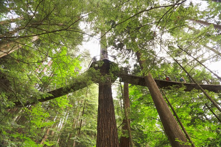 El Parque de Capilano hay que ganárselo. Para llegar, hay que cruzar el famoso puente colgante del mismo nombre. Una vez en el puente, tus pies estarán a 137 m sobre un cañón de 70 m de profundidad. Es decir, más de 200 m sobre el suelo. El puente, la atracción más antigua de Vancouver, se construyó en 1889. Sin embargo, la versión actual se reformó en 1956. En el parque, el Cliffwalk a lo largo del acantilado y la Treetops Adventure son accesibles con la misma entrada que para el puente.