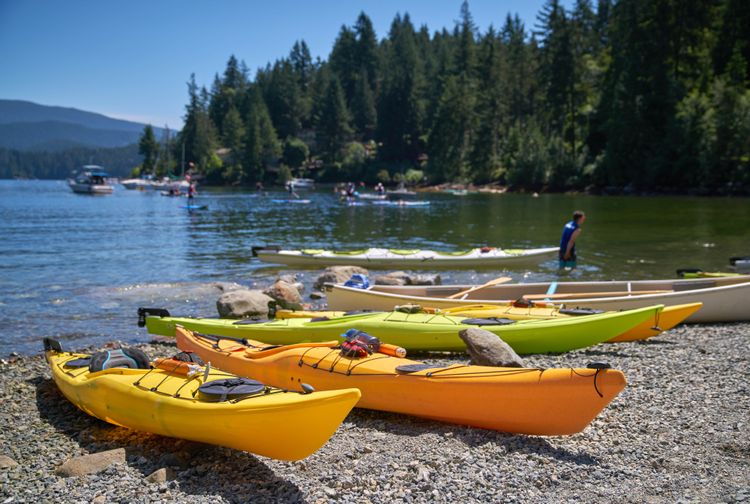 Como ya se ha mencionado, en Deep Cove se pueden realizar muchas actividades, suficientes para llenar una tarde de domingo de verano. La más común es alquilar un kayak o un remo y aventurarse por las aguas de Deep Cove. Cuesta 45 $ el alquiler de dos horas de un kayak individual, y 70 $ el de un dúo en kayak doble. También existe la opción de navegar con un guía, ideal para acontecimientos especiales como la famosa"luna llena", que atrae a la zona a un gran número de habitantes de Vancouver. Deslizarse sobre las aguas reflejadas en la luz plateada de la luna llena es una experiencia única. Pero no se equivoque: aunque los bosques que lo rodean y el color del agua sugieran un lago canadiense más, en realidad es el océano el que toca las orillas de este lugar, más concretamenteIndian Arm, un fiordo de laderas escarpadas de unos veinte kilómetros de longitud.
